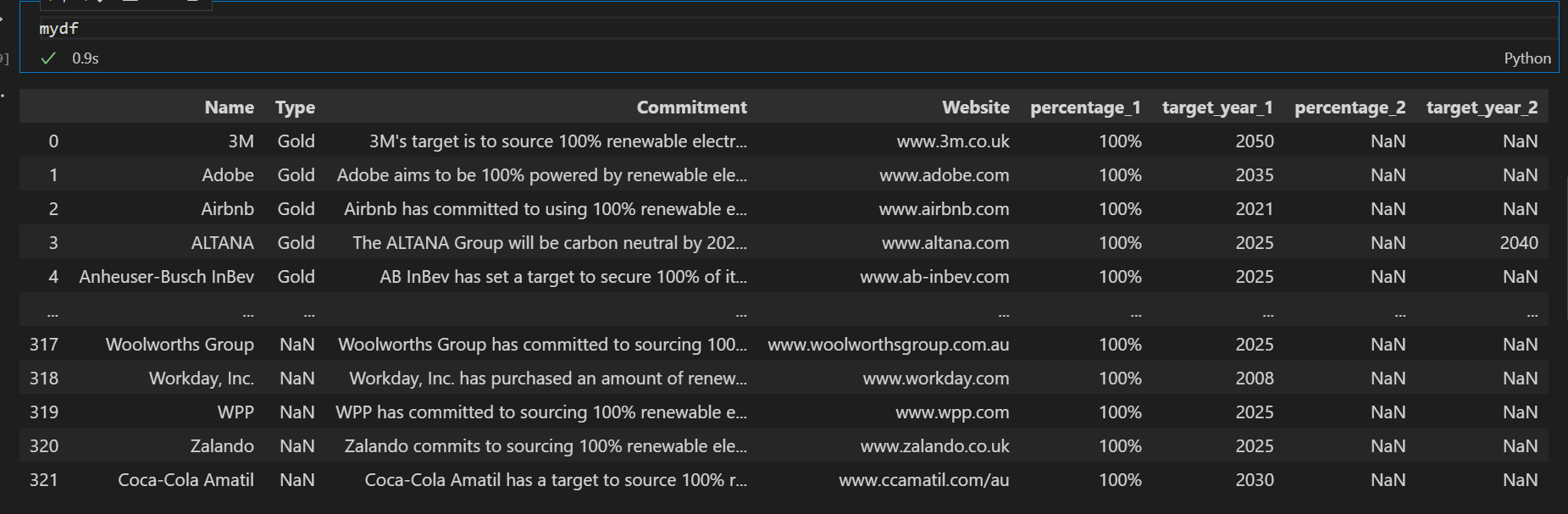 그럴러면 특정 시점 기준으로 RE100 기업 리스트를 정리하고, 저장해 두어야 한다.