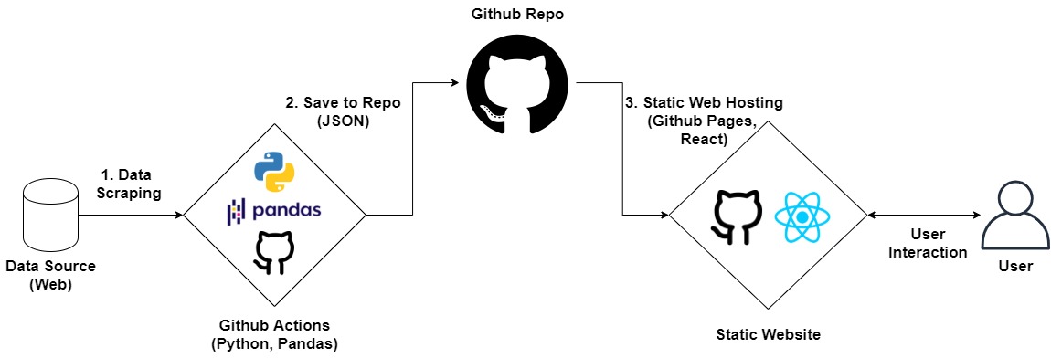 파이썬으로 프로그램을 만든 후 서버에서 작동하게 하는 경우, 개인이든 클라우드든 서버 운영비용이 부가적으로 들기 때문에 이보다는 간편하고 가벼운 정적 사이트를 활용해보고자 했다.