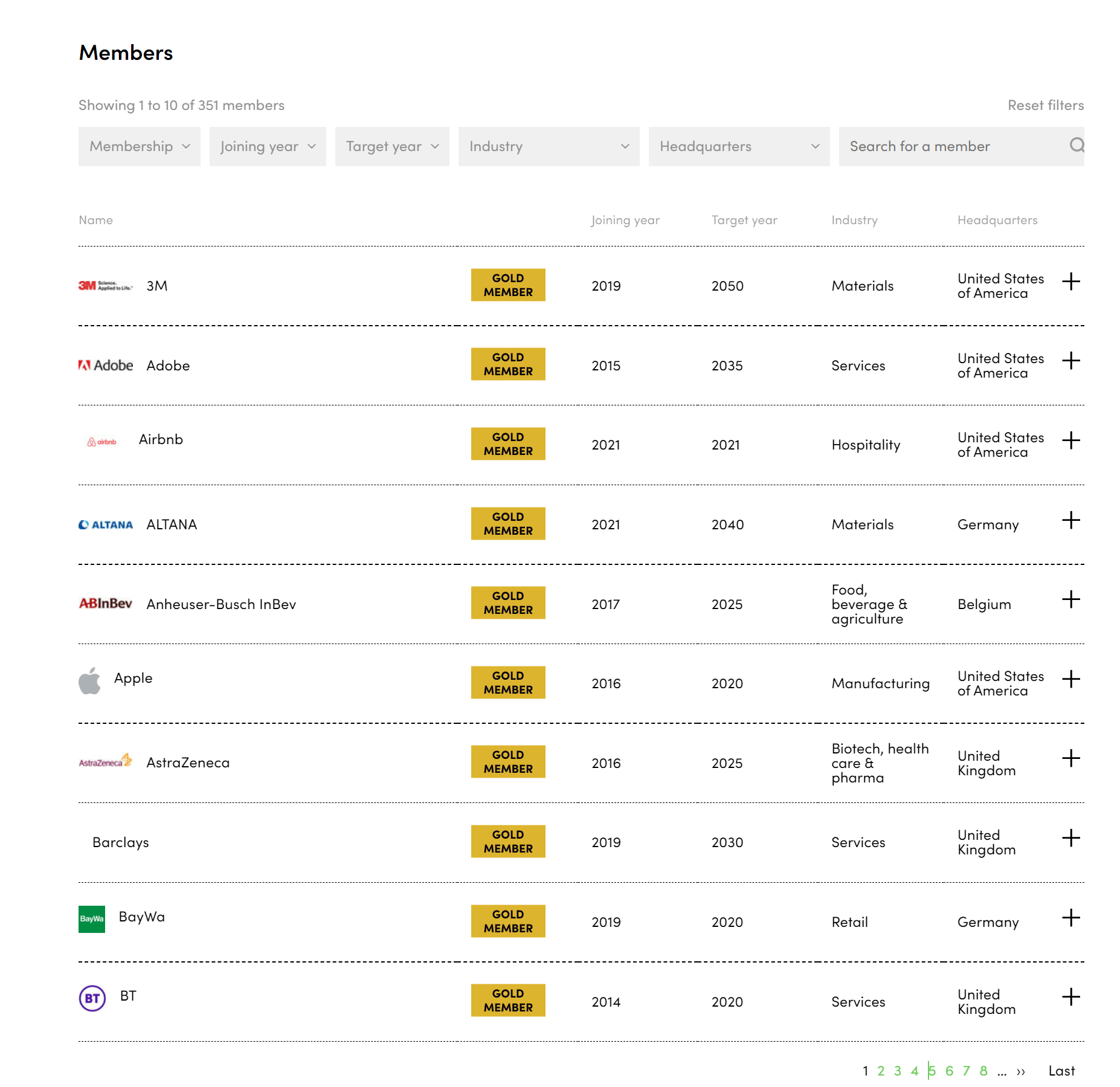 홈페이지에서도 참여 연도, 산업, 국가 등을 기준으로 기업을 필터링해서 확인할 수 있다