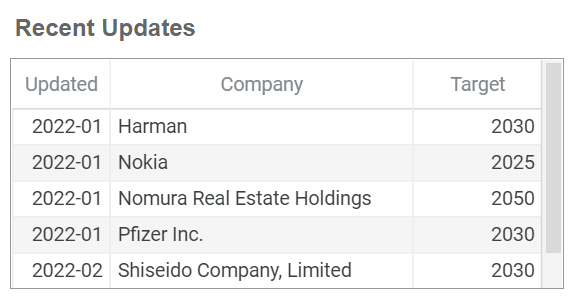 - 최근에 새롭게 추가된 RE100 기업들을 한눈에 보여준다.