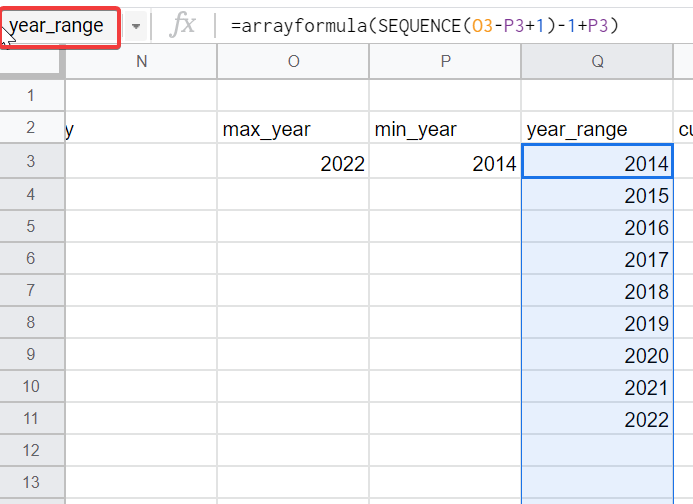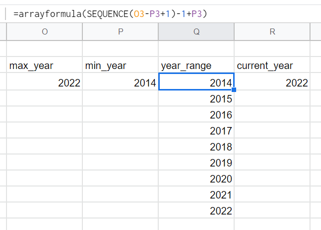 year_range = arrayformula(SEQUENCE(max_year-min_year+1) + min_year -1)