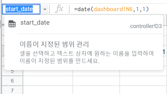 밑에서 등장할 쿼리시트 및 쿼리함수에서도는 여러 범위들이 등장하는데, 각 컨트롤러 범위에 이름을 지정해서 쿼리문을 만들 때 실수를 줄일 수 있다.